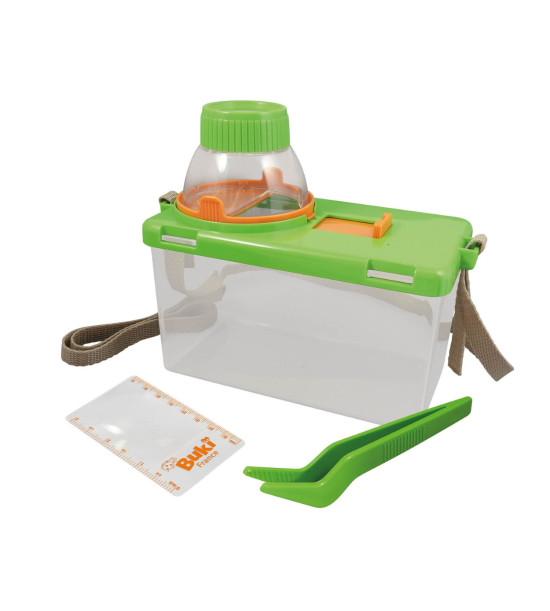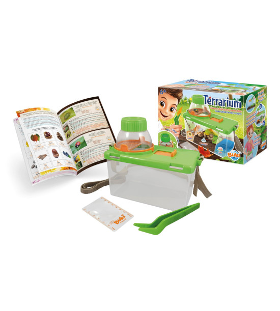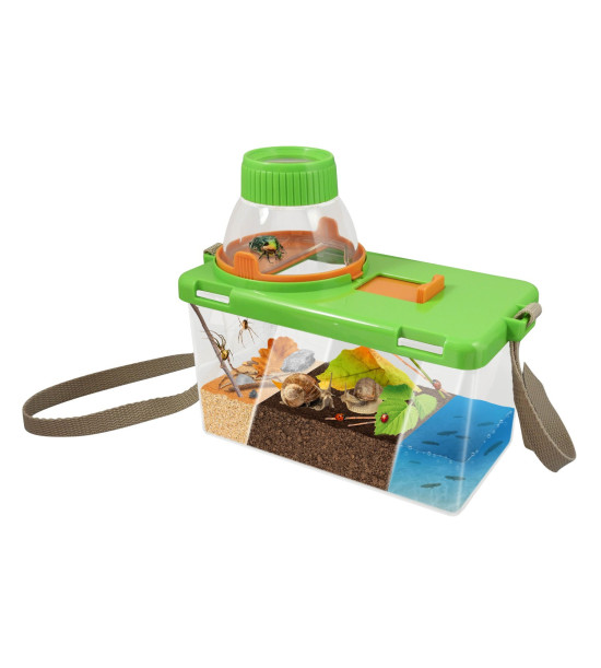 Detská sada pre chov a pozorovanie hmyzu, slimákov, pavúkov, žubrienok, chrobákov a i podobne.Pomocou pinzety vybavíte terárium kameňmi, rastlinami, kôrou a ďalším materiálom. Potom stačí do terária a nasťahovať nových obyvateľov a pozorovať ich správanie pomocou odnímateľnej lupy so 6-násobným zväčšením, alebo pomocou ďalšej lupy s trojstupňovým zväčšením.Obsahuje: terárium s opaskom na rameno, samostatnú misku s lupou, kartu s mierkou a tromi zväčšovacími plochami, pinzetu.Rozmery terária: š x v x h: 15 x 11 x 9cm (s prídavnou lupou výška 17cm).Vhodné pre deti od 6 rokov.