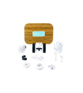 Fable je modulárny otvorený robotický systém vhodný pre výučbu programovania, informatiky, matematiky, fyziky, mechatroniky, automatizácie. Pomáha študentom nadobudnúť zručnosti potrebné pre 21. storočie. Pomocou Fable si môžu študenti postaviť svojho vlastného robota, ktorý spĺňa reálne potreby. Programovať s Fable robotom je jednoduché – pomocou vizuálnych blokov alebo textovým programovaním. Vhodné pre 1-3 študentov v skupine. 1 kĺbový modul s dvoma silnými servo motormy 1 modul pre bezdrôtové programovanie 1 držiak na smartfón (pre Aplikáciu Fable Face app) 1 stavebný modul 4XY 1 konektorový modul pre 3D-tlačené diely 1 modul príslušenstvo 1 katapult 1 laserové ukazovadlo 1 bludisko 1 vidlica 1 balančná tyč pre loptu 2 USB kábel 2 box zo základným stojanom Aplikácia Fable