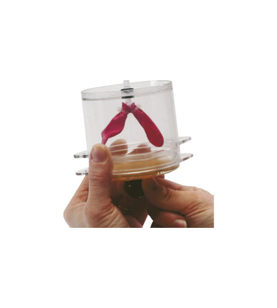 Demonštrácia respiračných pohybov, jednoduché použitie. Priehľadný recipient (hrudný kôš), ktorého dno tvorí membrána (bránica), obsahuje 2 balóny (pľúca). Tlakom na membránu dochádza k nafukovaniu či vyfukovaniu balónov prepojených s vonkajším prostredím trubicou v tvare Y (priedušky a priedušnica). Zloženie: priehľadný recipient o priemere 8cm a výške 8cm, kaučuková membrána, gumená zátka s otvorom, 2 gumené balóny. Dodává sa rozložený.