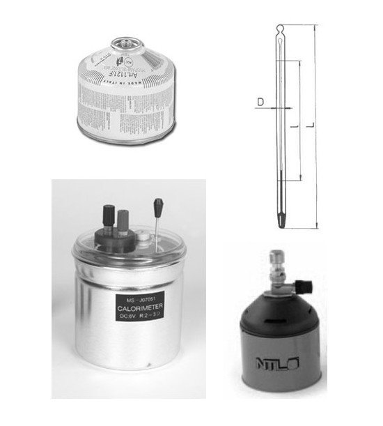 Sada pre termodynamiku obsahuje 1 ks propan-butanový plynový horák s ventilovou náhradnou náplňou s 230 g propan-butánovej zmesi EN417 v bezpečnostnej nádržke, 1 ks Joulovho kalorimetra s 3 špirálami a 2 ks laboratórnych liehových teplomerov so silikónovým dielom na uchytenie proti samovoľnému pohybu.