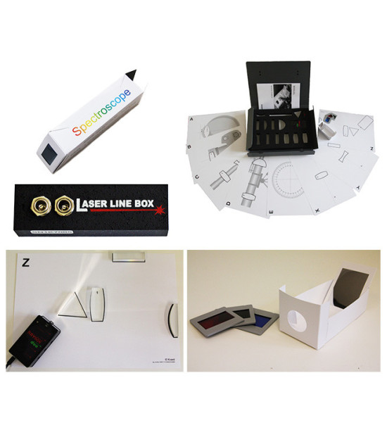 Sada žiackych optických súprav pre skupinu žiakov obsahuje 2 sady po 19 komponentoch, pričom každá umožňuje vykonanie týchto experimentov: odraz a lom svetla (snellov zákon), totálny odraz, geometrická konštrukcia obrazu pomocou význačných lúčov, funkcia zdravého ľudského oka, chyby oka a korekcie, funkcia základných optických prístrojov, fotoaparát, ďalekohľad. Každá súprava obsahuje 11 ks modelov optických komponentov (napr. sadu spojok a rozptyliek, optický hranol, zrkadlo rovinné, vypuklé, duté, 3 ks svetelný čln, sadu RGB filtrov, sadu 8 ks laminovaných pracovných listov formát A3 s popisom v slovenskom jazyku, manuál, zbierku 22 úloh v slovenskom jazyku a 1 ks zdroj 3 paralelných lúčov (1 x 532 nm, 2 x 635 nm) s elektronickým prepínaním predvolených lúčových pozícií, 3 lúčový zdroj spĺňa požiadavky na triedu bezpečnosti 2 podľa STN EN 60825-1:2008-06, k zdroju je priložené vyhlásenie o zhode a protokol s reálne nameranými hodnotami výkonu jednotlivých lúčov, 1 ks napájací zdroj, 1x zdroj bieleho svetla integrovaný do zdroja paralelných lúčov, umožňujúci demonštrovať rozklad svetla po prechode hranolom. Sada pre skupinu 2- 4 žiakov.