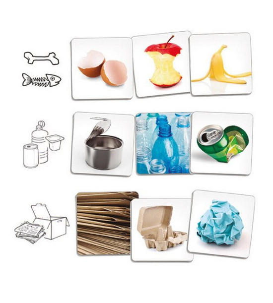 Hra, ktorá pomáha rozvíjať ekologické povedomie. Naučí deti separovať a rozlišovať rôzne druhy odpadu: organický, plasty, plechovky, papier, sklo a pod.Hra obsahuje 5 kontajnerov (modrý, žltý, zelený, oranžový a šedý), 35 kartičiek s fotografiami rôznych druhov odpadu, hraciu kocku a pedagogický návod.