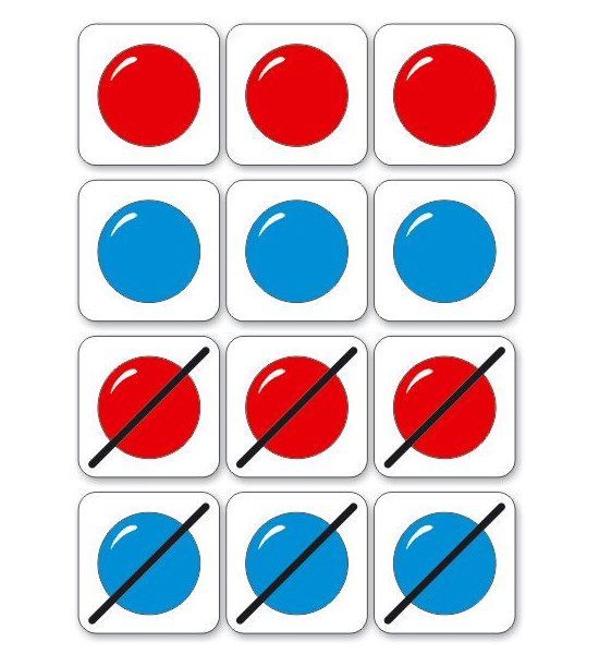 Názorná pomôcka na vyvodzovanie základného učiva v prvom ročníku: znázornenie čísla, porovnávanie počtu, sčítanie, odčítanie a ďalšie precvičovanie učiva. 1 sada - 40ks obrázkov + 2 náhradné kartičky.Obsah: 10ks magnetické obrázky - bodky červené / 9 x 9cm / pevný kartón 2mm 10ks magnetické obrázky - bodky červené, prečiarknuté / 9 x 9cm / pevný kartón 2mm 10ks magnetické obrázky - bodky modré / 9 x 9cm / pevný kartón 2mm 10ks magnetické obrázky - bodky modré, prečiarknuté / 9 x 9cm / pevný kartón 2mm Kartónová krabica.