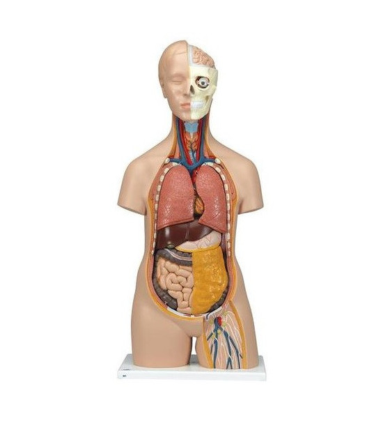 12-dielne torzo s oddeliteľnou hlavou (na jednej strane znázornená lebka s mozgom), 2 pľúcne laloky, srdce (2 časti), žalúdok, pečeň so žlčníkom, kompletné črevá so slinivkou a odoberateľným slepým črevom (2 časti). Rozmery: 87x38x25 cm. Hmotnosť: 4,6 kg.