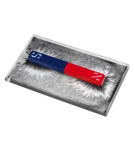 Sada na pozorovanie siločiar magnetického poľa: teleso s otvorom a doska na zobrazovanie magnetických siločiar, 2 tyčové magnety rôznej veľkosti, jeden podkovovitý magnet.