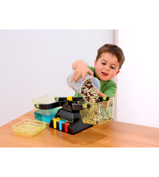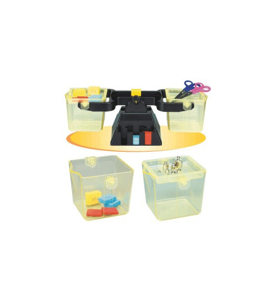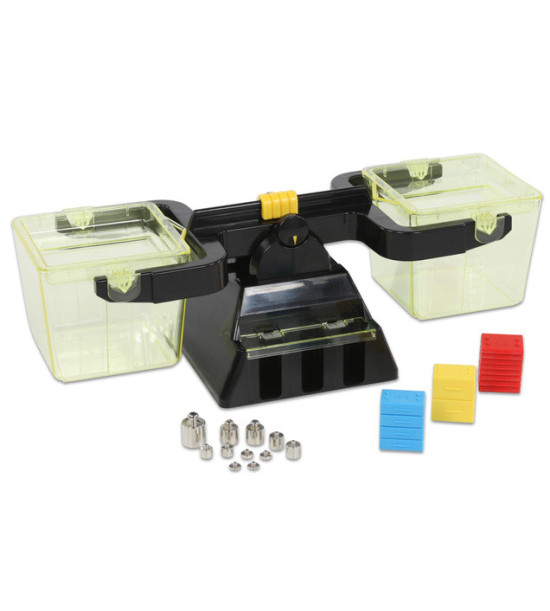 Univerzálna školská váha s 2 plastovými nádobami. Táto váha je špeciálne výrobená pre základné školy tak, aby deti získali čo najväčšiu skúsenosť s vážením. Obsahuje: 2 plastové nádoby s vrchnákmi, každá s obsahom 1l, z bočnej strany majú svoju mierku. V podstavci je umiestnená súprava závaží: Kovové závažia 11ks - 2 x 1g, 2 x 2g, 2 x 5g, 2 x 10g, 2 x 20g, 1 x 50g. Plastové závažia 14 ks: 4 x 10g, 8 x 15g, 2 x 20g.