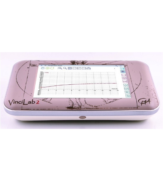 Meracie rozhranie VinciLab 2, systém zberu dát samostatne, s počítačom v triede a aj v teréne. Datalogger pracuje v prostredí Android. VinciLab 2 je moderný a pokročilý mobilný grafický systém zberu dát, ktorý je možné používať samostatne, s tabletmi alebo počítačmi. Je to prenosné zariadenie so systémom Android vybavené dvoma procesormi, hlavným procesorom na ovládanie operačného systému a obrazovky zariadenia a meracím procesorom na riadenie merania pri vzorkovacej frekvencii až 1 MHz. VinciLab 2 má 5” farebný dotykový displej a je vybavený Wi-Fi a Bluetooth konektivitou. Pre pripojenie senzorov má VinciLab 2 štyri BT vstupy. Senzory CMA BT vrátane senzora pohybu BT55i možno priamo pripojiť k vstupom Interfejsu. Zabudované sú dva ďalšie senzory, interný mikrofón a 3-osový akcelerometer. Prostredníctvom HDMI konektora možno obrazovku VinciLab 2 jednoducho zdieľať na väčších obrazovkách alebo premietať.VinciLab 2 sa dodáva spolu s napájacím adaptérom, USB káblom a užívateľskou príručkou.