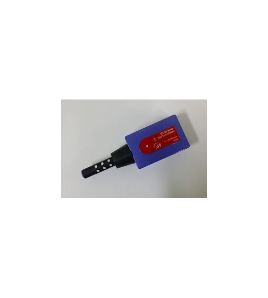 Senzor CO2 vo vzduchu (0..100 000ppm) sa používa na monitorovanie úrovne oxidu uhličitého v rozmedzí od 0 do 100 000 ppm (meranie hladiny CO2 ľudského výdychu, dýchania zvierat, monitorovanie produkcie CO2 v priebehu chemických reakcií, pri fermentácii). Snímač využíva nedisperznú IR detekciu (NDIR), plyn sa difúziou cez vetracie otvory pohybuje smerom dovnútra a von z trubice senzoru. Trubica obsahuje na jednom konci IR zdroj a na druhom konci IR detektor vlnových dĺžiek. Detektor meria v 3 s intervaloch absorbované infračervené žiarenie v pásme 4,26 mikrometra (vlnová dĺžka, kde CO2 najviac absorbuje infračervené svetlo) a druhú neabsorbovanú vlnovú dĺžku, pre kompenzáciu zmien teploty a stabilitu a presnosť merania. Senzor je dodávaný so vzorkovaciou fľašou s obsahom 250 ml a gumovou zátkou pre pripojenie na trubicu senzoru. Neponárajte trubicu senzoru do kvapalín, senzor je určený len na meranie plynných koncentrácií CO2. K senzoru je potrebný kábel BT-IEEE1394 (nie je súčasť balenia) pre pripojenie k interfejsu.