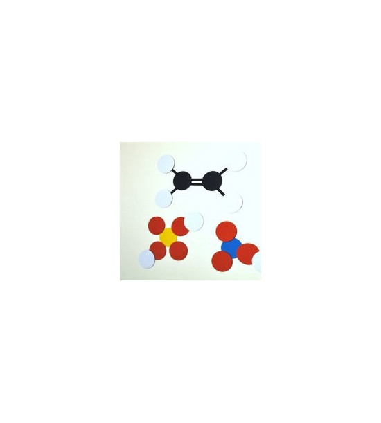 Učiteľský model molekuly je demonštračný nástroj, ktorý umožňuje učiteľovi jednoduchým spôsobom prezentovať model molekuly a chemické väzby. Tento model môže byť použitý s väzbami alebo bez väzieb a môže zobrazovať veľkú škálu molekúl. Všetky časti sú magnetické a je možné ich použiť priamo na tabuľu v učebni. Obsah balenia v krabici: po 20 ks čiernych, červených a bielych kruhov-atómov (predstavujúcich napr. uhlík, kyslík a vodík), po 10 ks modrých, zelených a žltých kruhov-atómov (predstavujúcich napr. dusík, chlorid a síru), 50 väzieb, manuál s inštrukciami.