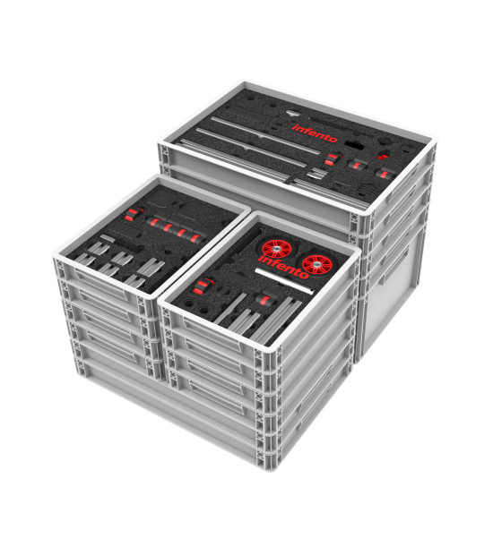 Táto sada obsahuje 14 stohovateľných úložných boxov, pričom každý box obsahuje 1 Discovery zostavu. Každý študent dostane svoj vlastný pracovný zošit s úlohami.
