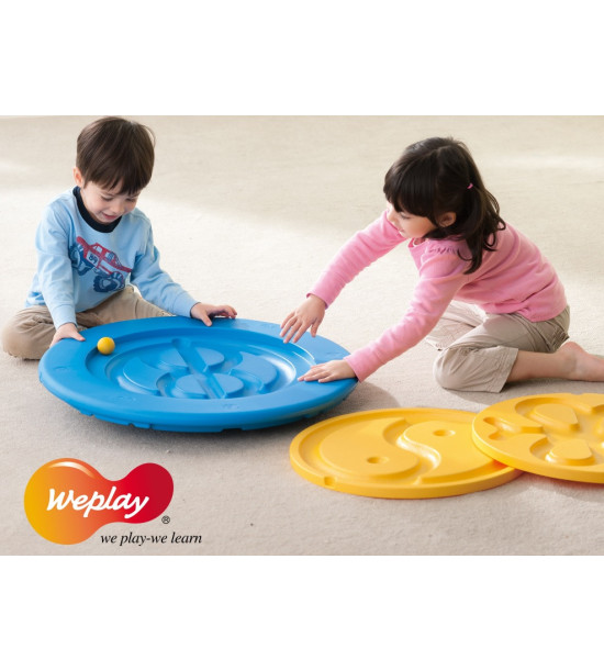 Vo dvojici to ide ľahšie! Dve deti alebo dospelí môžu spolupracovať a posúvať loptu cez 3 labyrinty. Obsahuje 3 guľôčky, Vložky sa dajú použiť aj na precvičovanie koordinácie rúk. Rozmery: priemer 66 cm, výška 9 cm. Nosnosť až 100 ks. Materiál: plast.