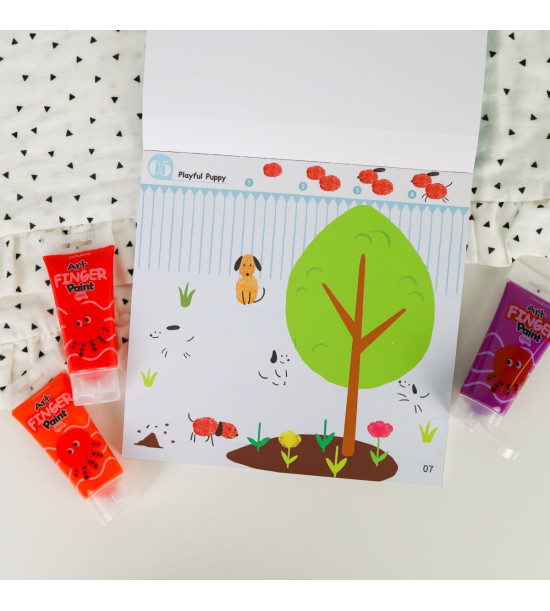 Blok Maľovanie prstovými farbami od Tookyland obsahuje 30 listov s predlohami s prírodnými, zvieracími a ďalšími motívmi. Deti si ich môžu dotvoriť úplne podľa seba pomocou prstových farieb. Úroveň 1 poskytuje kreatívnu zábavu tým najmenším umelcom. Stačí pár odtlačkov a krásny obrázok je na svete. Blok obsahuje aj návod, ako s prstovými farbami tvoriť.