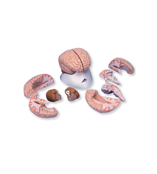 Veľmi detailný model ľudského mozgu, ktorý je mediálne rozdelený. Obe polovice mozgu môžu byť rozobrané na: čelné parietálne a záhlavové laloky, polovica mozgového kmeňa a malého mozgu. Určený na výučbu o ľudskom nervovom systéme a anatómii mozgu. Je dodávaný na odnímateľnom podstavci.