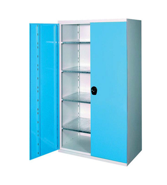 Kovová dielenská skriňa určená na odkladanie dielenského náradia. Má robustnú zváranú konštrukciu z oceľového plechu hrúbky 0,7 mm, s oblými hranami, uzamykanie dverí je dvojbodovým rozvorovým zámkom. Vnútorné vybavenie: 4 police a 3 zásuvky, nosnosť police 50 kg, nosnosť zásuvky 40 kg, štandardná perforácia chrbta. Rozmery (š x v x h): 780x1920x380 mm, povrchová úprava - vypaľovací lak z umelej živice. Cena dopravy sa kalkuluje samostatne.