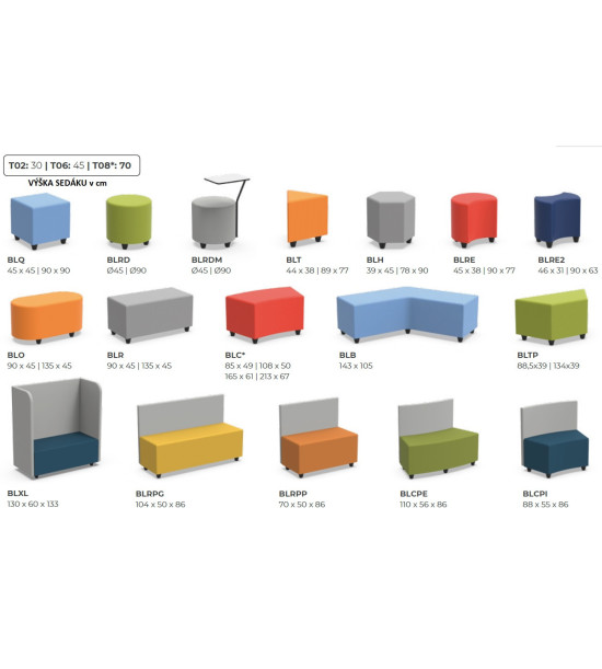 Veľký relaxačný sedací oblúk v tvare bumerangu na kužeľových nožičkách, vnútro z peny s hustotou 23 kg/m3. Poťah koženka alebo ohňovzdorná tkanina. Veľkosť/rozmery T2: 143 x 105 x 30cm. Dostupné aj vo výške sedenia 45 cm. MOŽNOSTI: rozšírenie o kolieska. Dostupné v rôznych farbách.