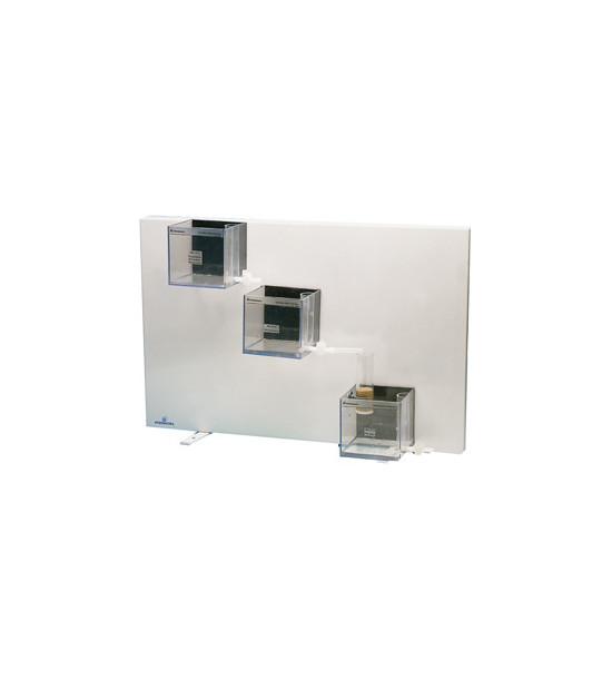 Znázornenie jednotlivých etáp čistenia vody. Jednoduchý a názorný model. Rýchle prevedenie pokusu. Niekoľko nádržiek demonštruje etapy prípravy pitnej vody: filtrácia, zrážanie, vločkovanie, odkalovanie a filtráciu pieskom. Tieto kroky odstraňujú kal vo vode, viditeľný okom. Pokus je čistý a samozrejme využíva iba netoxické látky. Zloženie: sada nádržiek s magnetickými úchytkami, ktoré možno prichytiť na kovový panel (nie je súčasťou dodávky), filtračná kolóna, nálepka, chemikálie, piesok, odpadová voda, vločkovadlo, zrážacie činidlo, dostatočné množstvo až pre 100 pokusov. Dodáva sa s návodom na používanie. Nevyhnutné príslušenstvo: voda z rieky a pod. Doporučené príslušenstvo: kovový panel 600mm x 400mm, malá magnetická miešačka, náhradné látky pre stanicu pitnej vody.