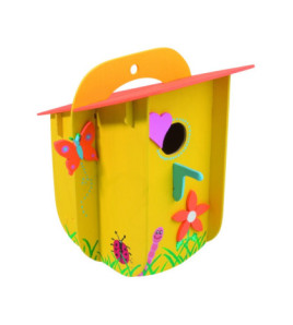 Poskladaj si vtáčiu búdku. Drevená stavebnica vtáčej búdky v rozloženom stave.