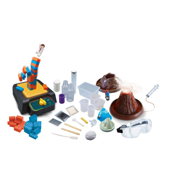 Vystavte panáčika Lea tým najhorším katastrofám – sopečným erupciám, zemetraseniam, vodným chrličom, dopadom meteoritov atď.Vytvoríte tri typy sopečných erupcií: podmorské erupcie, výbušné erupcie a efuzívne erupcie lávy so svetelnými a dymovými efektmi. Pomocou simulátora zemetrasenia môžete stavať budovy a štruktúry pomocou stavebných kociek a vystavovať ich vibráciám motorizovanej základne, ktorá reprodukuje rôzne úrovne zemetrasenia.Okrem iného súprava obsahuje aj mapu sveta pre lokalizáciu a zaznamenanie prírodných javov.Obsahuje bohaté príslušenstvo, základné substancie na miešanie sopečných zmesí. Samozrejmosťou sú ochranné okuliare.Vyžaduje batérie 4x AAA + 3x AAA (nie sú súčasťou).Vhodné pre deti od 8 rokov.