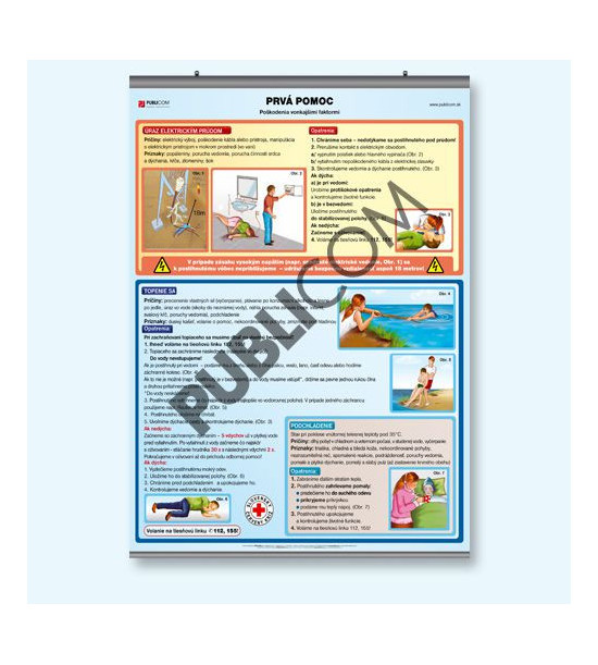 Tabuľka A4 Poškodenia vonkajšími faktormi je ďalšou zo série tabúľ venovaných téme poskytovania prvej pomoci. Vo výrobku sú spracované príčiny, príznaky a opatrenia (prvá pomoc) v prípade úrazu elektrickým prúdom, topenia sa a podchladenia. Odborné a zároveň zrozumiteľné textové informácie k uvedeným témam sú podložené aj farebnými obrázkami, ktoré znázorňujú najdôležitejšie postupy pri poskytovaní prvej pomoci v uvedených prípadoch. Niektorými obrázkami (napr. Kontrola dýchania, Stabilizovaná poloha) nadväzuje výrobok na predchádzajúce témy spracované v našich tabuliach venovaných prvej pomoci. Tabuľka je určená pre všetky vekové kategórie, pre žiakov, učiteľov i širokú verejnosť.