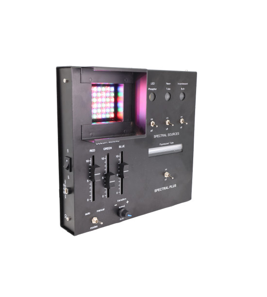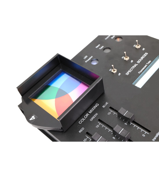 Demonštračná súprava Spectral Plus je navrhnutá pre jednoduchú vizualizáciu základných vlastností svetla. Použitím červených, zelených a modrých LED diód, filtrov rôznych farieb a nadstavcov dokážete vysvetliť aditívne a subtraktívne miešanie farieb, rozptyl svetla, absorpciu a difrakciu. Použitím spektroskopu sú študenti schopní analyzovať svetlo rôznych zdrojov, pochopiť rozdiely medzi kontinuálnym a čiarovým spektrom. Farba a farebné videnie je veľmi zaujímavá časť fyziky, pretože sa s ňou stretávame v každodennom živote. Obsah demonštračnej súpravy: RGB displej - štvorcová matica 36 LED diód (12 červených, 12 zelených, 12 modrých), neonová trubica, biela LED s fosforovým konvertorom vlnových dĺžok, klasická žiarovka , ortuťová žiarivka, sada farebných a rozptylných filtrov, matnica pre RGB displej, spektroskopy, nožičky