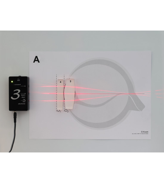 Rozšírená základná sada o zdroj bieleho svetla, optický hranol a pracovný výkres na demonštráciu rozkladu svetla. Vynikajúca súprava pre praktické cvičenia študentov a žiakov. Skladá sa z 13 ks optických modelov, 3-lúčového laserového zdroja svetla, zdroja bieleho svetla integrovaného do 3-lúčového lasera a ôsmich pracovných listov. Súprava hravou formou umožňuje pochopenie základných princípov geometrickej optiky - zákon odrazu a lomu, prechod svetla cez optické prostredie. Pomocou zalaminovaných pracovných listov žiaci môžu zostaviť jednoduché optické prístroje. Pracovný list - ľudské oko - vysvetľuje potrebu nosiť okuliare. Pomocou zdroja bieleho svetla vie vyučujúci demonštrovať rozklad svetla po prechode hranolom, princíp ako vzniká dúha. Všetky prvky súpravy sú nemagnetické. K súprave je priložený manuál. Počet experimentov nie je nijako limitovaný.