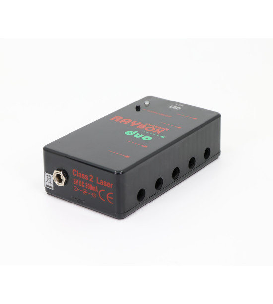 DUO LG5/635,520 laser je zdrojom 5-tich paralelných lúčov. Jednosmerné roztiahnutie lúčov cylindrickou šošovkou umožnilo získať na tabuli dobre viditeľné čiarové zdroje svetla. Na zvýraznenie optickej osi je pre stredný lúč použitý zelený laser, ostatné lúče sú červené. Nepotrebuje clonku na zakrývanie lúčov. Pomocou tlačidla sa prepína do predvolených módov: všetky lúče (1,2,3,4,5) svietia, tri lúče (1,3,5) svietia, tri lúče (2,3,4) svietia, jeden lúč (3) svieti. Integrovaná LED slúži ako zdroj bieleho svetla pre demonštráciu rozkladu svetla. V kombinácií so súpravami GON alebo GON+ dokážete jednoducho vysvetliť geometrickú optiku, základné optické javy a princípy fungovania optických prístrojov. Napájací zdroj je v cene. Špecifikácia: Typ laseru - dióda, vlnová dĺžka - 635/520 nm, výstupný výkon/trieda lasera - Pmax < 1mW / II, vzdialenosť lúčov - 18 mm, rozmery - 112 x 62 x 32 mm, napájanie - 3V DC / 300 mA