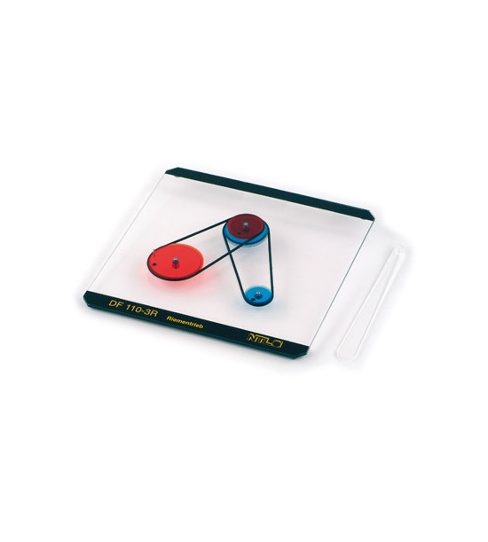 TM 19 Remeňový prevod. Transparentné demonštračné modely, vyrobené z priesvitného plastu, jednotlivé funkčné časti sú farebne odlíšené. Možnosť premietania cez vizualizér na projekčnú plochu. Rozmer: 25x25cm.