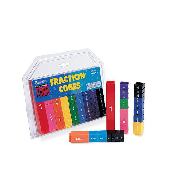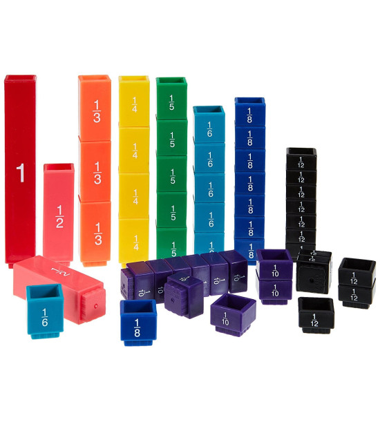 Farebné kocky pomáhajú deťom pochopiť zlomky. Všetky kocky používajú rovnaké farby, ktoré ilustrujú každú časť: červená = 1, ružová = 1/2, oranžová =1/3, žltá = 1/4, zelená = 1/5,tyrkysová = 1/6, modrá = 1/8, purpurová = 1/10 a čierna = 1/12 . Jedna úplná časť meria 12 cm.