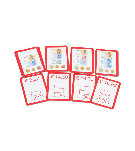 Na kartičke je zobrazený určitý počet bankoviek a mincí. Ale aká je ich celková hodnota? Deti vyložia príslušné peniaze a spočítajú výslednú sumu. Riešenie si môžu sami skontrolovať na zadnej strane karty. Obsah: 25 ks kartónových kartičiek s príkladmi na počítanie sumy v eurách a centoch (počítanie s des. čiarkou), v plastovej krabičke.