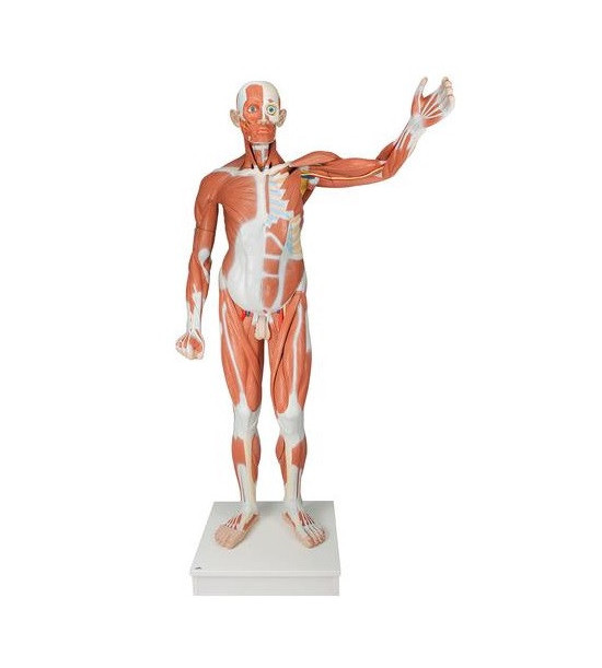 37-dielny model svalstva muža v životnej veľkosti ukazuje hĺbkové a povrchové svalstvo. Zloženie: lebka, 6 častí mozgu , očná buľva , prsník a brušná stena , obe paže , 2 časti hrtana , 2 pľúca , 2-dielne srdce , bránica , 2-dielny žalúdok , pečeň, žlčník , oblička , celý črevný systém , polovica močového mechúra , 2-dielny penis , 10 svalov. 53 kg, 180x110x50 cm.