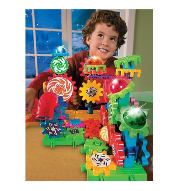 Stavebnica obsahuje 121 dielov ako sú ozubené kolieska, základne, samolepky žiariace v tme, blikajúce svetielka s gombíkovou batériou (zahrnuté), motorček atď. Balené v praktickom vedierku. Vyžaduje 3 AAA batérie, ktoré nie sú súčasťou. Obsahuje návod. Podporuje jemnú motoriku dieťaťa. Stavebnicu je možné použiť samostatne, alebo v kombinácií s ktoroukoľvek zostavou z radu stavebníc "Kolieska". Vek 5+