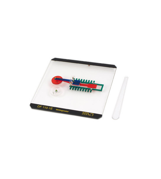 TM 24 Stirlingov motor. Transparentné demonštračné modely, vyrobené z priesvitného plastu, jednotlivé funkčné časti sú farebne odlíšené. Možnosť premietania cez vizualizér na projekčnú plochu. Rozmer: 25x25cm.