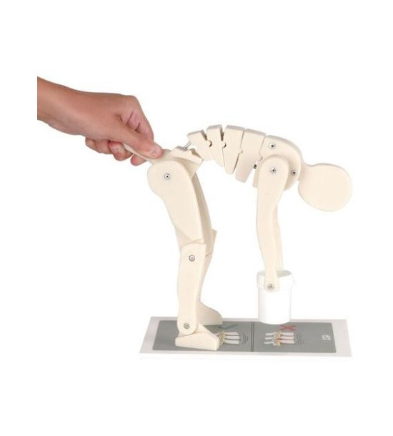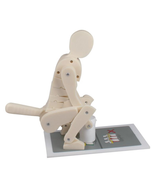 Model správneho a nesprávneho zdvihnutia bremena. Postava zdvihne závažie z jednej z dvoch pozícií. Ak sa použije správna technika, chrbtica zostane v správnej pozícii. Nesprávna technika spôsobuje deformáciu stavcov chrbtice. Ak figurína zdvihne bremeno správne, t.j. nohy na šírku ramien, v podrepe narovná chrbát, všetky stavce zostanú spolu, nenamáhate platničky a záťaž sa rozloží na celú chrbticu. Ak figurína zdvihne bremeno s rovnými nohami a prehne chrbát, chrbtica je zohnutá a medzi stavcami vznikajú medzery a je možné jasne vidieť, že zdvíhate chrbtom a nie nohami a záťaž tlačí na prednú časť stavca, čo môže spôsobiť herniu (vyskočenie a poškodenie) platničky. Model sa dodáva sa na podložke s ilustráciami správneho a nesprávneho zdvíhania s ohľadom na chrbticu. Praktická pomôcka, ako zvýšiť povedomie o účinkoch dvíhania bremien na chrbticu.