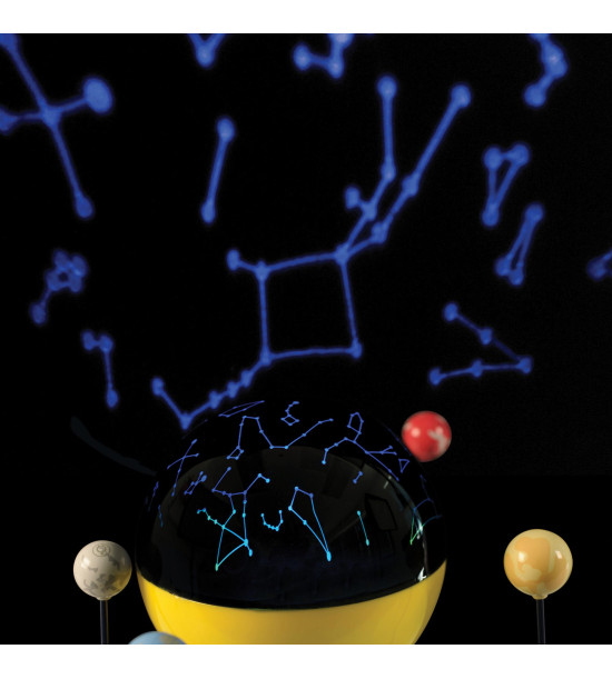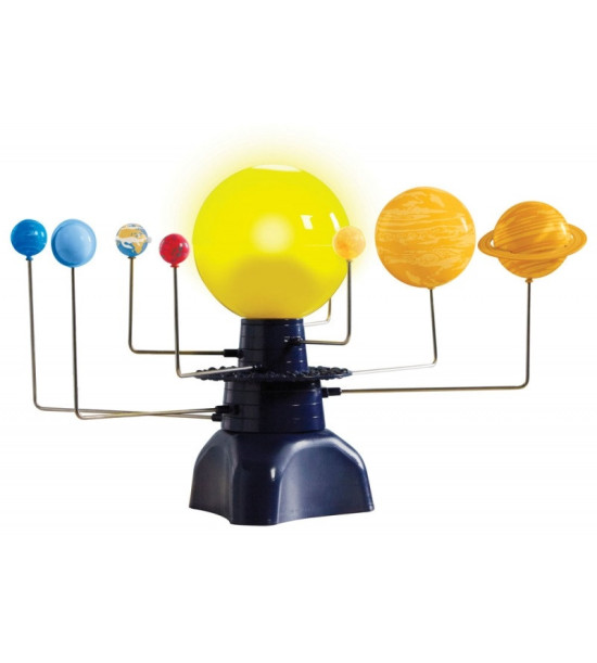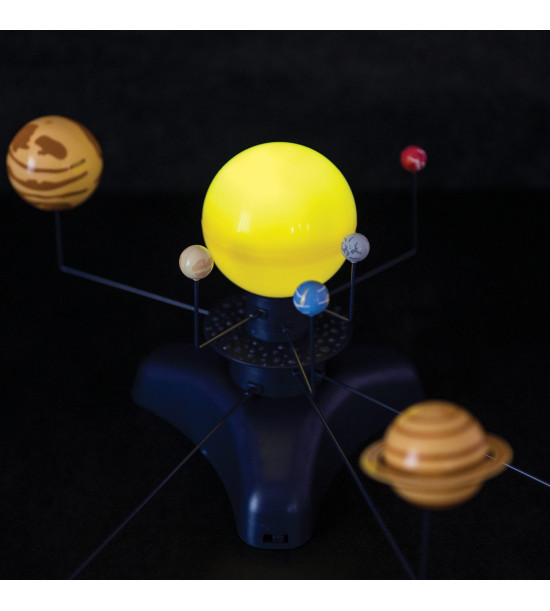Motorizovaný solárny systém GeoSafari® premení každú miestnosť na planetárium. Pomáha deťom pozorovať, ako sa planéty otáčajú okolo Slnka. Vnútorné aj vonkajšie planéty sa otáčajú rôznymi rýchlosťami. Model obsahuje LED lampičku - Slnko, ktoré môže slúžiť aj ako nočná lampička s funkciou automatického vypnutia po 20 minutách. Keď sa zakryje Slnko hviezdnou kupolou, premietnu sa súhvezdia na steny a strop tmavej miestnosti. Vyžaduje 4 AA batérie (nie sú súčasťou balenia). Model nie je v reálnej mierke ku slnečnej sústave.