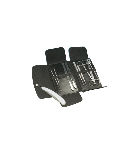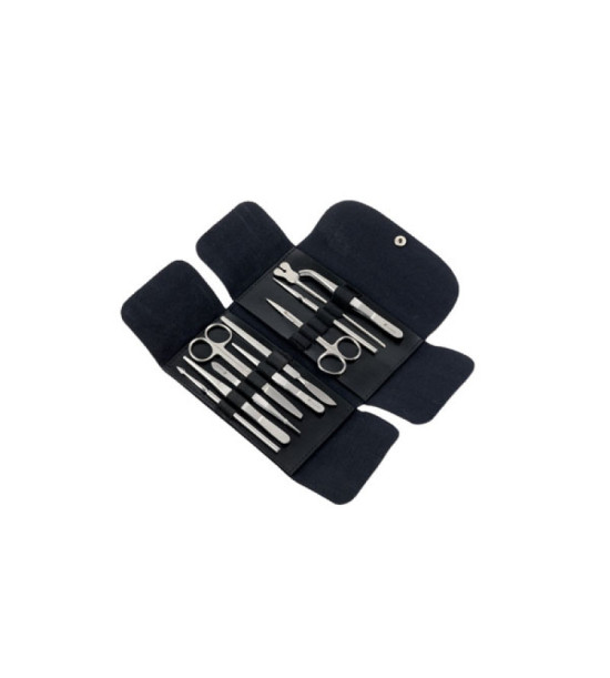 Súprava s10 preparačnými nástrojmi uložená v čiernom puzdre s dvomi chlopňami. Zloženie: skalpel, silné kliešte na rohovinu, silné rovné kliešte, nožničky s ostrým koncom, nožnice so zaobleným koncom, jemná rovná pinzeta, pinzeta so zakriveným koncom, tenká rovná ihlica, kopijovitá ihlica, drážkovaná sonda.