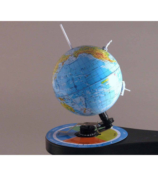 Model manuálneho planetária zobrazujúci vzťah medzi Slnkom, Zemou a Mesiacom (dve veľkosti Zeme a Mesiaca). Sledujte, ako Zem obieha okolo Slnka, Mesiac obieha okolo Zeme a Zem sa otáča okolo svojej osi.Svetlo zo Slnka zobrazuje na Zemi noc a deň, ročné obdobia a zatmenia a vytvára tiene.Použite malý model Zeme a Mesiaca na naklonenej obežnej dráhe, aby ste presne demonštrovali mesačné fázy a ukázali, prečo sa zatmenia nedejú každý mesiac.Témy na štúdium: Deň a noc; Ročné obdobia; Pohyb slnka po oblohe; Zmena dĺžky denného svetla; Tiene; Fázy Mesiaca; Dorastajúci Mesiac z rôznych zemepisných šírkach; Zatmenie Mesiaca a Slnka; Používanie slnečných hodín a určovanie hodín podľa tieňa; Lunárne mesiace a udalosti spojené s Mesiacom.Obsah súpravy: model Orbit Telúrium s príslušenstvom, dve veľkosti Zeme a Mesiaca, nalepovacia figúrka - model postavy, slnečné hodiny, dátumové karty, karty zatmenia a fázy mesiaca.Vhodný model pre úrovne vzdelávania druhý stupeň ZŠ a stredné školy s maturitou (GCSE).Rozmery modelu: dĺžka 65 cm, výška 25 cm. Napájací zdroj modelu slnka je súčasťou dodávky.
