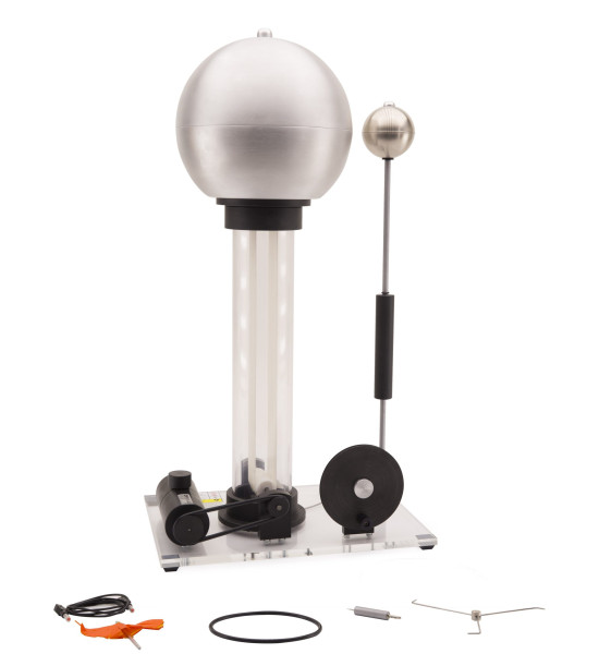 Van de Graaffov generátor je elektrostatický prístroj, ktorý vytvára elektrický prúd s vysokým napätím a pohybom nevodivého (napr. gumového) pásu prenáša kladný elektrický náboj do dutej kovovej gule, kde sa tento náboj akumuluje. Pás je umiestnený v transparentnom izolovanom valci, čo umožňuje študentom sledovať, ako systém funguje. Generátor je opatrený konduktorovou guľou s priemerom 225 mm, ktorá je schopná akumulovať približne 150-200 KV. Pohyb pásu zabezpečuje elektomotor s variabilnými otáčkami alebo ručný pohon. Súčasťou je malá konduktorová (vybíjacia) guľa, elektrostatický chochol a elektrostatická ružica s hrotmi. Pomocou kĺbového spoja v základni prístroja je možné meniť vzdialenosť medzi veľkou a malou guľou. Rozmery: Priemer konduktorových gúľ: 225 mm and 70 mm. Výška: cca 650 mm. Základňa: 250 x 350 mm