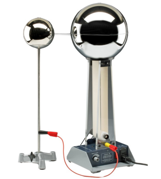 Generuje veľmi vysoké jednosmerné napätie cca 100 kV, je však bezpečné ho používať z dôvodu nízkeho výstupného prúdu. Generátor je vybavený vodivou guľou s priemerom 220 mm. Guľa je vybavená objímkou s priemerom 4 mm na pripojenie iného zariadenia pomocou kábla. Hornú časť gule je možné demontovať, pre prístup ku konštrukcii zariadenia. Statickú elektrinu vyrába gumový pás a 2 plastové valčeky. Spodný valec je poháňaný hnacím remeňom z 230 V motora s plynulou reguláciou otáčok. V zadnej časti je umiestnený ručný pohon. Na kryte motora je uzemňovací 4mm konektor na uzemnenie alebo na pripojenie k samostatnej vodivej guli (nie je súčasť dodávky). Technické údaje: Priemer gule: 220 mm. Kapacita vzhľadom na zem: cca. 12 pF. Nabíjací prúd: až 6 µA. Dĺžka iskry: 80 - 100 mm. Celková výška: 560 mm. Šírka a hĺbka: 195 mm. Hmotnosť: 4 kg. Dodávané s protiprachovým krytom a manuálom. POZNÁMKA: zariadenie sa neodporúča používať u ľudí s kardiostimulátorom.