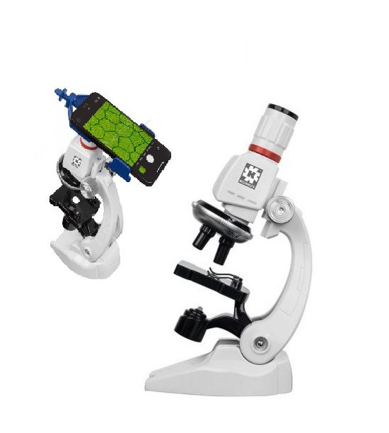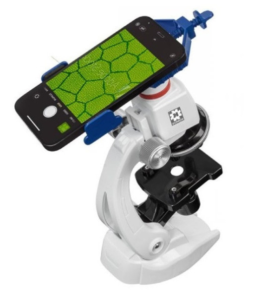 Didaktický mikroskop s veľmi dobrým zväčšením 100x - 400x - 1200x. Obsahuje adaptér na mobilný telefón, a teda preparáty je možno pozorovať nielen cez okulár, ale aj na displeji smartfónu. Po pripojení smartfónu je možné zdieľať snímky a videá z pozorovaných objektov. Zoom okulár, otočná hlavica 3 tromi objektívmi, osvetlenie pomocou žiarovky. Súčasťou dodávky je 1 trvalý preparát, 4 podložné sklá, 6 krycích sklíčok, pinzeta a 2 fľaštičky, adaptér na pripojenie smartfónu. Napájanie žiarovky: 2x AA batéria 1,5V (Batérie a smartfón nie sú súčasťou pomôcky).