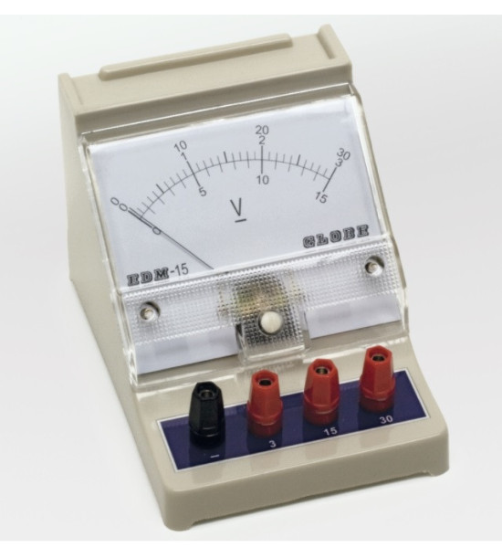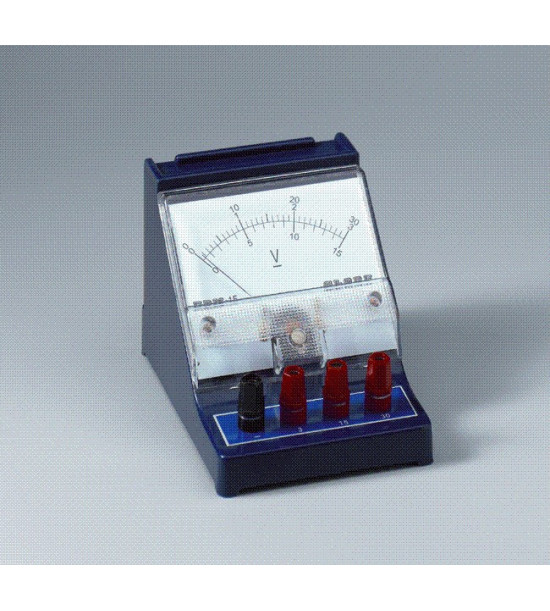 Voltmeter na galvanometrickom princípe triedy 2.0, s krátkodobým preťažením bez poškodenia, s ochrannou diódou proti prepólovaniu, nula nastaviteľná skrutkou, 4mm zdierky pre vodiče. Meracie rozsahy: 0 až 3V / 15V / 30V, delenie stupnice: 0,1V / 1V / 1V, dĺžka stupnice: 75mm, minimálny rozmery: 100 x 140 x 90mm.