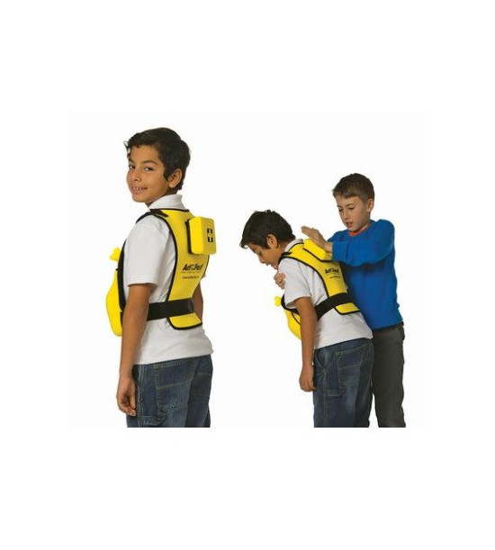 Detská žltá vesta umožňuje precvičovať brušno/hrudné stlačenie (Heimlichov manéver) na uvoľnenie a vyčistenie blokovaných dýchacích ciest od cudzieho telesa (FBAO). Trenažér obsahuje patentovaný vzduchový vak na nácvik Heimlichovho manévru. Pri správnom vykonaní manévru penová zátka vystrelí do vzduchu, vďaka čomu je tréning zábavný. Obsahuje tiež pripojiteľnú penovú vložku na chrbát na precvičovanie záchranných protokolov Červeného kríža a odporúčania Európskej resuscitačnej rady (údery do chrbta medzi lopatky).