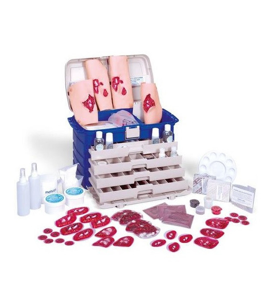 Sada vhodná pri simulácii katastrofických scenárov, kde povrchové zranenia tvoria najširšiu škálu poranení. Obsahuje špeciálne zranenie ako sú strelné rany, perforácie, poranenie čeľustných kostí, a ďalšie. Obsahuje Krvácajúce rany - 2 zložené zlomeniny ramennej a holennej kosti; Nekrvácajúce rany - 60 najrôznejších nalepovacích tržných rán a otvorených zlomenín; Kozmetické príslušenstvo - 1 paleta na make up, 1 nožnice, 1 zrkadlo, 1 odmerka, 2 rozpračovače, 2 vosky, 2 fľaše činidla pre simuláciu krvi, 3 balíčky práškovej krvi, z ktorých každý stačí na 3,7 litrov krvi, 2 balíčky rozbitého plexiskla na simuláciu skla vloženého v rane, 2 balíky falošných nečistôt , po 2 farby na makeup z červenej, modrej, hnedej, bielej, žltej, čiernej a telovej, 2 modelovacie pasty: biela a tmavá, 1 glycerín pre simuláciu potenia, 1 studený krém, 1 minerálny olej, 1 drevené uhlie, 3 latexové vložky simulujúce jazvy, 2 vazelíny, 2 pásky citlivé na tlak, 1 balíček Metylcelulózy pre zahusťovanie krvi, 2 lepidlá, 6 jazykových/ústnych lopatiek, 10 bavlnených aplikátorov, 10 vytieracích tyčiniek, 1 balíček vreckoviek, 6 kozmetických tampónov. Rozmery: 41x33x56 cm, hmotnosť: 12,3 kg.
