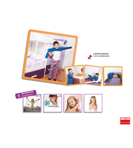 Balenie obsahuje 20 obrázkov s reálnymi fotografiami (11,5 x 11,5 cm), ktoré znázorňujú denný režim a rôzne činnosti vykonávané počas dňa. Deti sa tak naučia ako si rozdeliť deň, čo vedie k väčšej samostatnosti a tým aj k zvýšeniu vlastného sebavedomia. Zvlášť vhodné pre špeciálne vzdelávanie detí. Rozmer balenia: 23,6 x 18,7 x 7,2 cm. Vek 3+