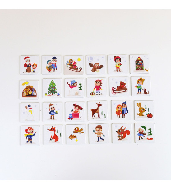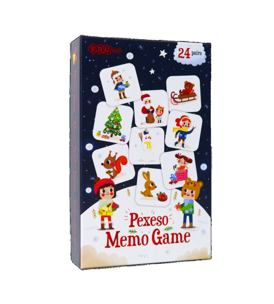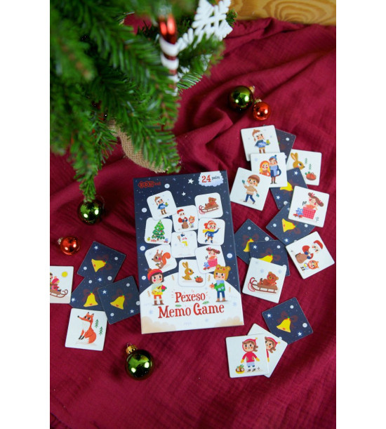 Originálne vianočné pexeso pre deti navodí u vás doma príjemnú vianočnú atmosféru. Balenie obsahuje 48 kartičiek, teda 24 párov pexesa, so zimnými a vianočnými motívmi z vianočného bestselleru Magnetická kniha Vianoce. Hravé ilustrácie vytvorila ilustrátorka Edita Hajdu. Kartičky majú rozmer 4,5 x 4,5 cm, vyrobené z pevného kartónu a majú oblé rohy. Sú tak dostatočne veľké a bezpečné pre malé detské ruky.