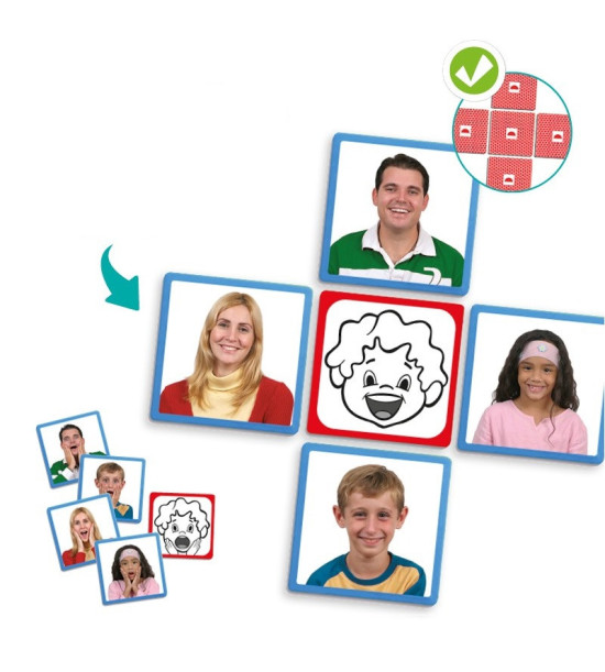 Hra je určená na rozoznávanie 10 rôznych výrazov tváre a ich spárovanie so štyrmi osobami. Obsahuje spolu 50 fotokariet, samokontrolný opravný systém a pedagogický návod.