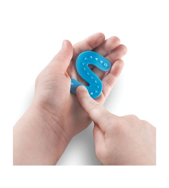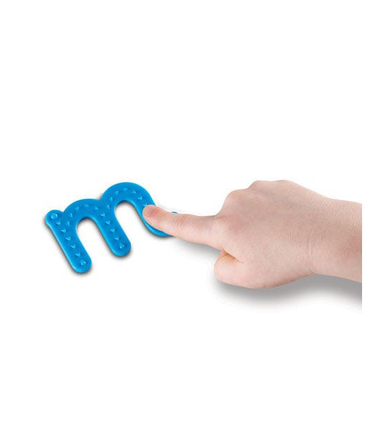 Praktická pomôcka premení výučbu písmen na hravú hmatovú hru. Každé písmenko má cestičku vedúcu od bodky v smere šípok. Ak pôjdete v protismere šípok, drsná textúra vám poskytne spätnú väzbu, že nasledujete nesprávny smer. Veľké plastové písmená sú vhodné i pre hru vo vode či piesku. Spoluhlásky a samohlásky majú odlišnú farbu. Písmená sú určené pre deti od 3 rokov.