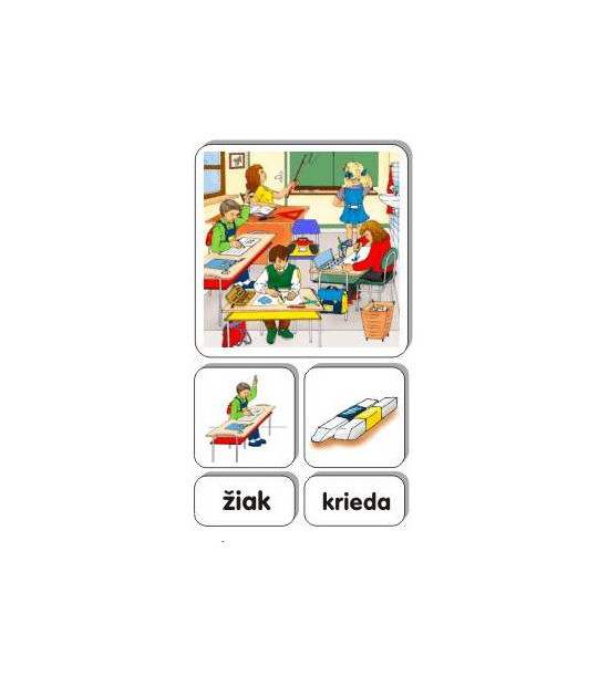 Súbor obrázkov a textových kartičiek umožňuje nácvik, precvičovanie a upevňovanie slovnej zásoby, tvorenie viet a dialógov k téme Trieda - SJ. Obsah: 1ks magnetické ilustrované obrázky / 18 x 18cm / pevný kartón 2mm 26ks magnetické ilustrované obrázky / 9 x 9cm / pevný kartón 2mm 33ks magnetické textové kartičky / 9 x 4,5cm / pevný kartón 2mm Kartónová krabica.