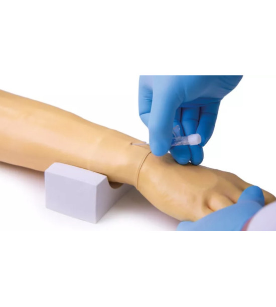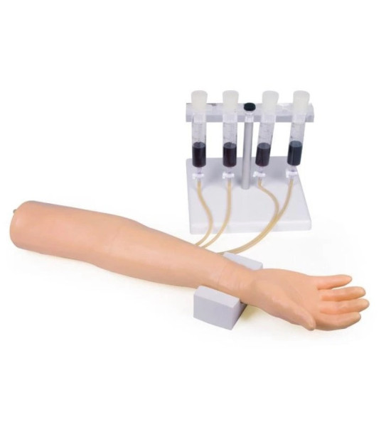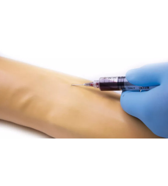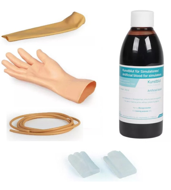 Cvičný model – simulátor na na nácvik intravenóznych injekcií a infúzií. Injekčné rameno je veľmi realistické, najmä čo sa týka pocitu pri vpichu, nevyžaduje takmer žiadnu starostlivosť a má kožu a žily, ktoré sa dajú ľahko a rýchlo vymeniť za veľmi nízke náklady. Ideálne použitie pre nácvik zručností: Intravenózna injekcia. Intravenózna infúzia. Odber krvi. Palpácia žíl. Zavedenie kanyly intravenózneho prístupu. Rozsah dodávky: 1x injekčné rameno pre dospelých vrátane kože a venózneho systému. 1x opierka na ruku. 4x nádobka na tekutinu. 1x 250ml umelá krv. 1x stojan na umelú krv. Návod na použitie. Odporúčané príslušenstvo (video, ako vymeniť kožu a venózny systém si pozrite v časti VIDEO K PRODUKTU): 7011 náhradná koža ramena, 7009 náhradná koža ruky, 7012 náhradný venózny systém, 7024 250ml umelá krv, 7015 podložky injekcií. Pre cenovú ponuku na odporúčané príslušenstvo nás kontaktujte.