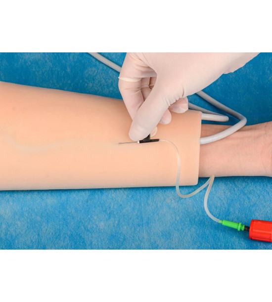 Cvičný model – intravenózna injekčná podložka na predlaktie, obsahuje žily na nácvik injekčného podávania a odber krvi. Žily sa plnia krvou pomocou systému hadičiek a počas vpichu vytvárajú realistický spätný tok. Žily sa dajú nahmatať. Cenovo dostupný model s dlhou životnosťou je určený na jednorazové použitie. Rozmery 11x18x7cm, hmotnosť 0,3kg.