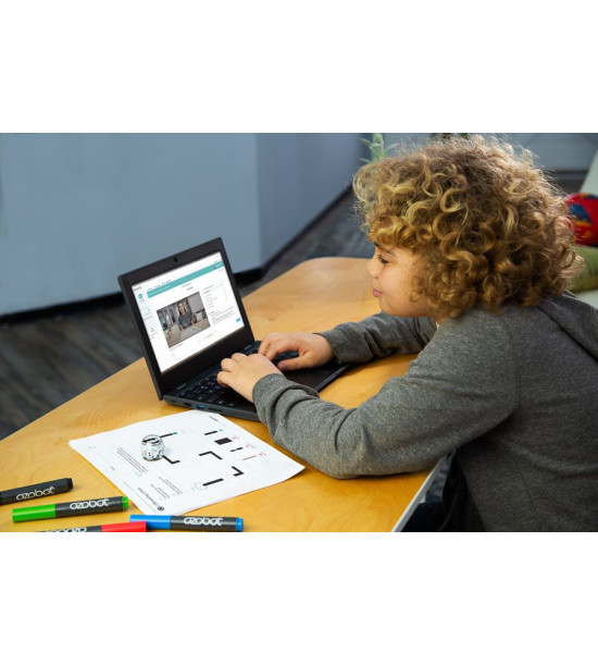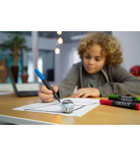 Funkcie: Intuitívne programovanie cez blokový editor OzoBlockly (webový prehliadač), alternatívne programovanie kreslením farebných kódov fixkami na papier, možnosť práce aj priamo na displeji tabletu, čítanie ozokódov pomocou senzorov, riešenie úloh, tvorba choreografií, hranie hier. Využitie vo vzdelávaní: Vhodné na výučbu základov programovania a robotiky, podpora STEM vzdelávania, rozvoj digitálnych kompetencií hravou formou. Obsah balenia: 1× Ozobot Bit+, 1× sada aktivít na úvod do programovania, 5× zmývateľná farebná fixa, 1× prenosné puzdro na zips.